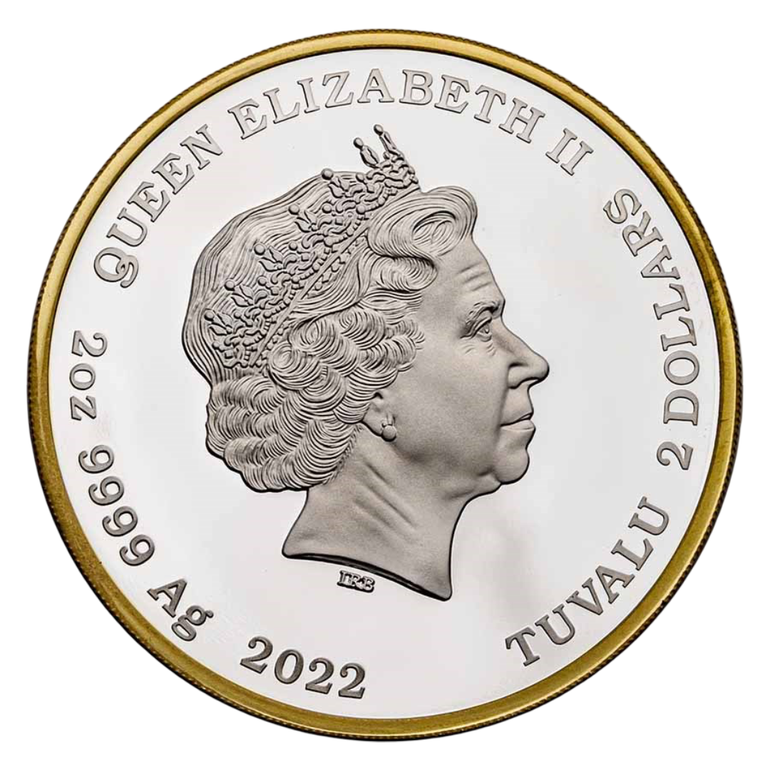 Celebrate six decades of one of cinema’s most iconic franchises with the 2022 TUV 2 oz Silver Gilded James Bond – 60 Years of Bond Proof coin. Struck from 2 troy ounces of .9999 fine silver and enhanced with 24-carat gold gilding, this limited-edition release commemorates the legendary British Secret Service agent introduced by author Ian Fleming in 1953.