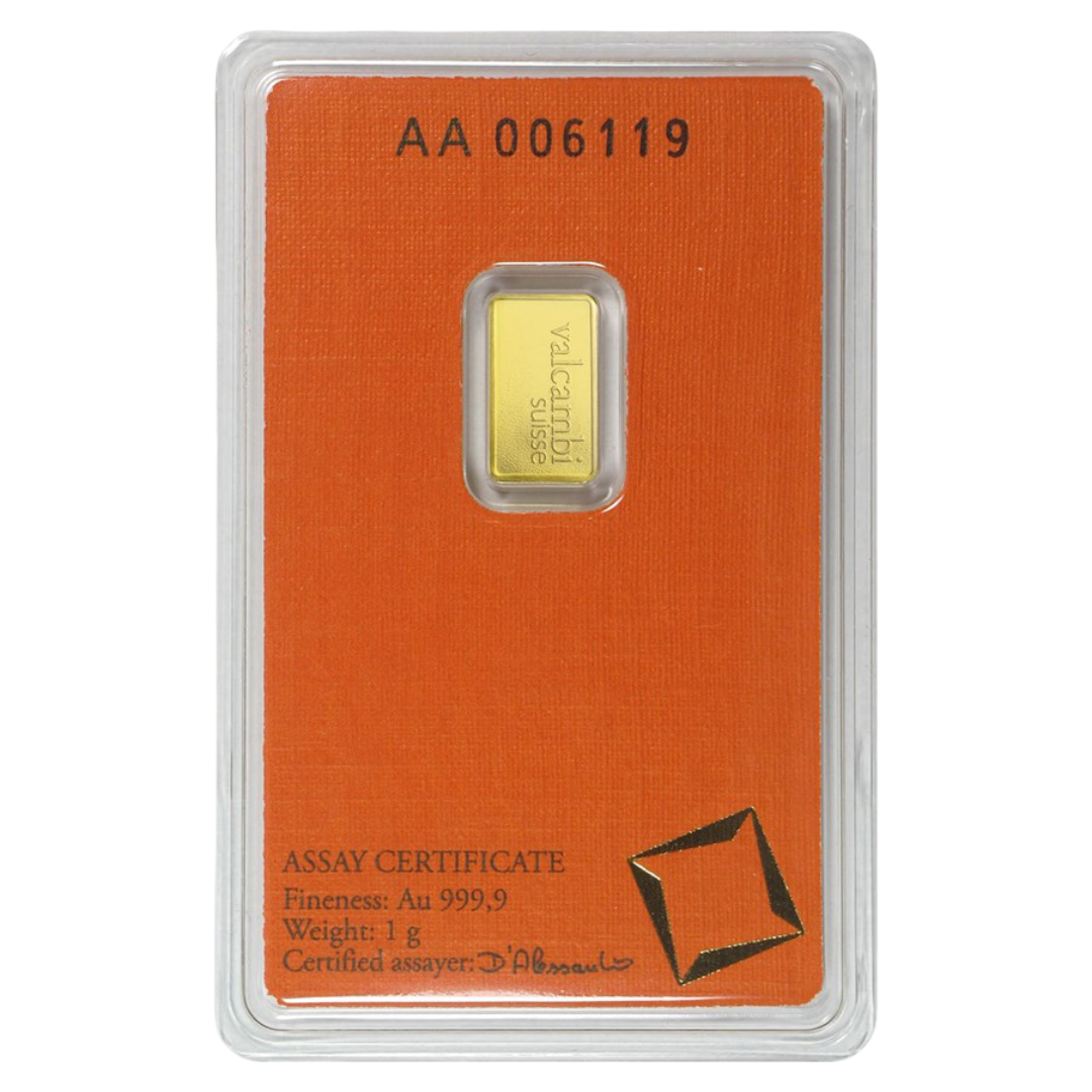 Valcambi 1 gram Gold Bar (in Assay Card)