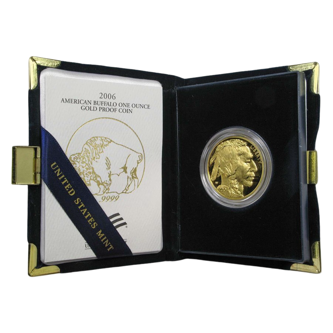 Each 1 oz Proof American Gold Buffalo coin is guaranteed by the U.S. Mint for weight, purity, and gold content. Random-year selection and packaging style may vary based on available inventory.