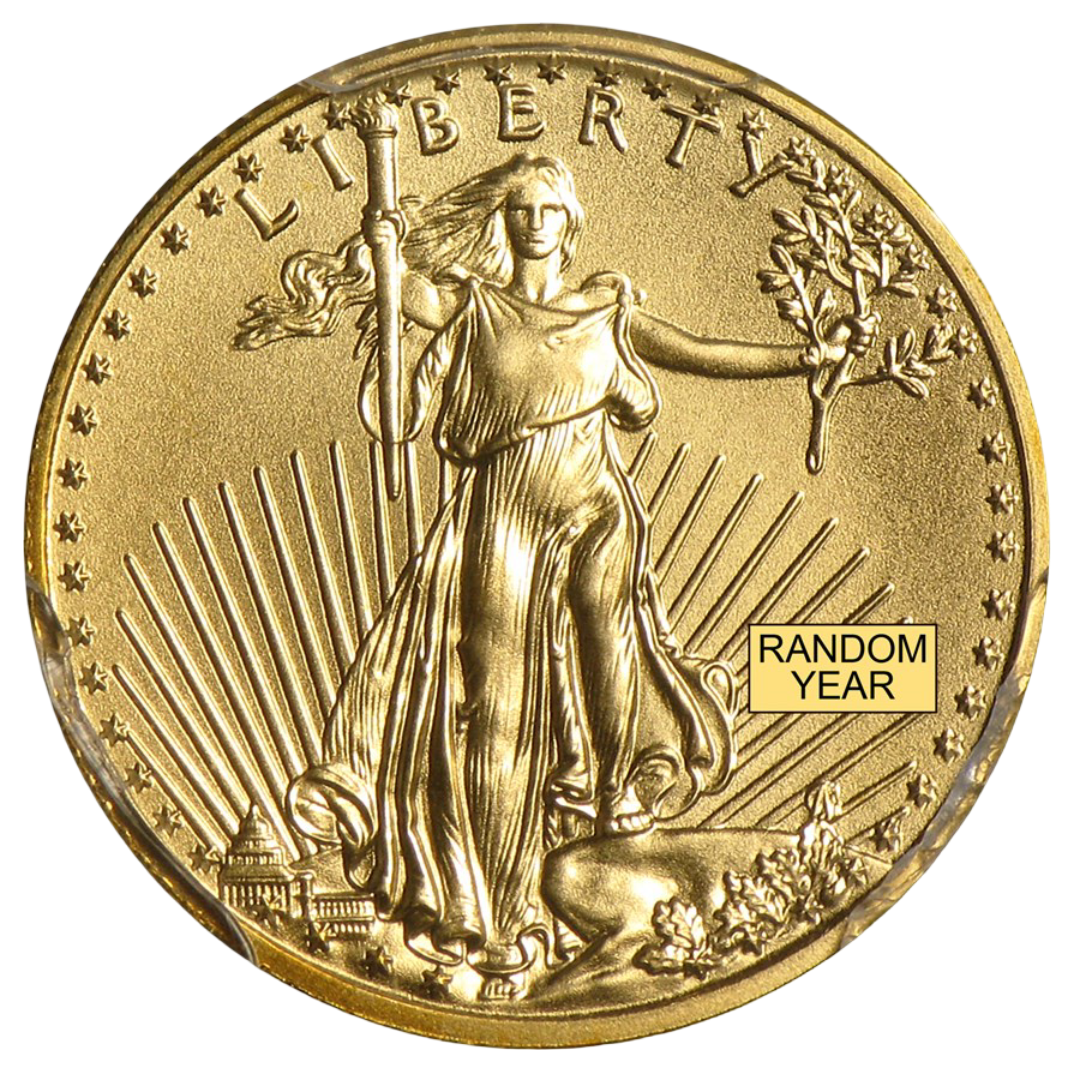 All MintBuilder American Gold Eagles are guaranteed by the United States Mint for weight and purity. Random dates based on available inventory; PCGS certification labels may vary.