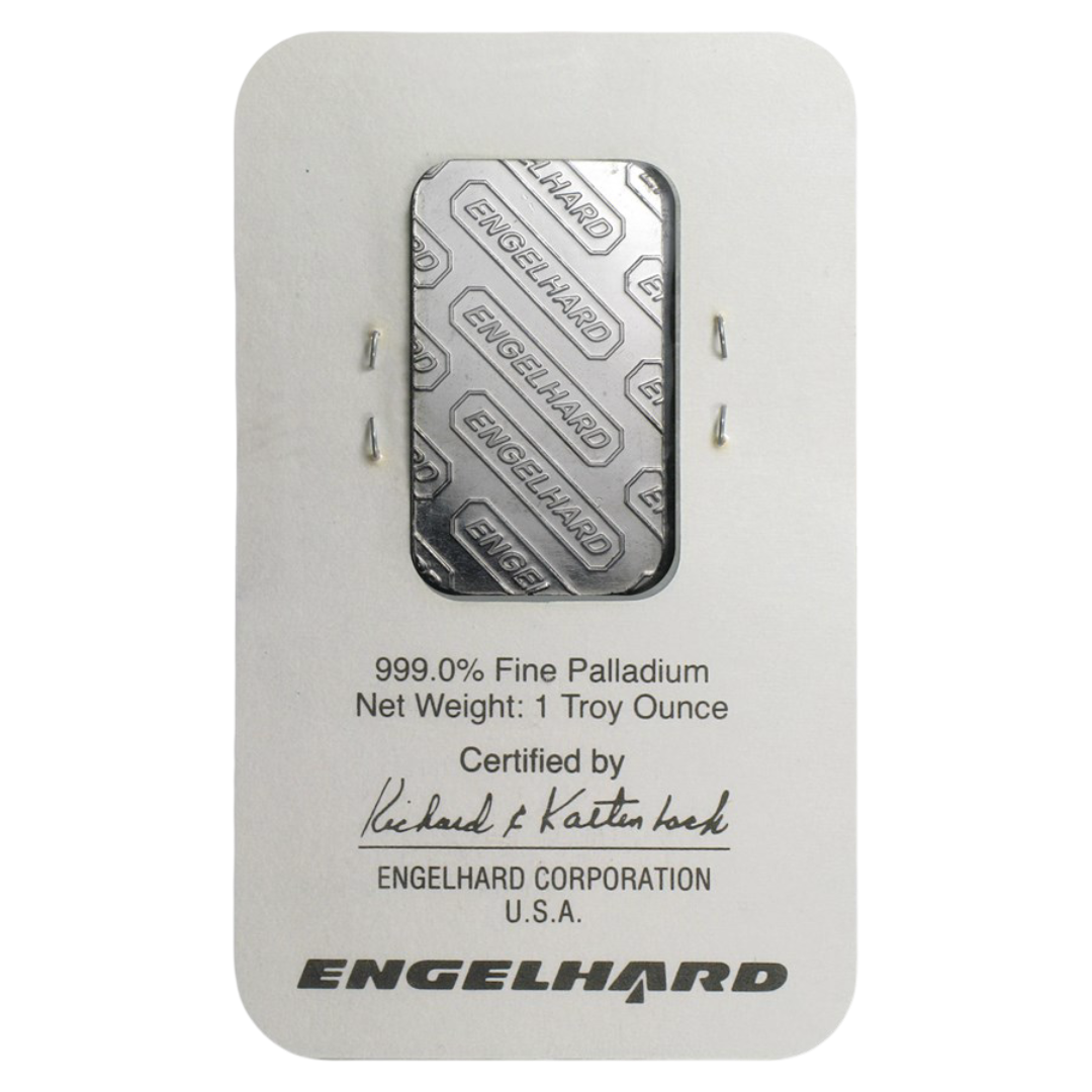 Add a 1 oz Engelhard Palladium Bar (In Assay) to your holdings today and secure a rare, globally recognized piece of palladium bullion.