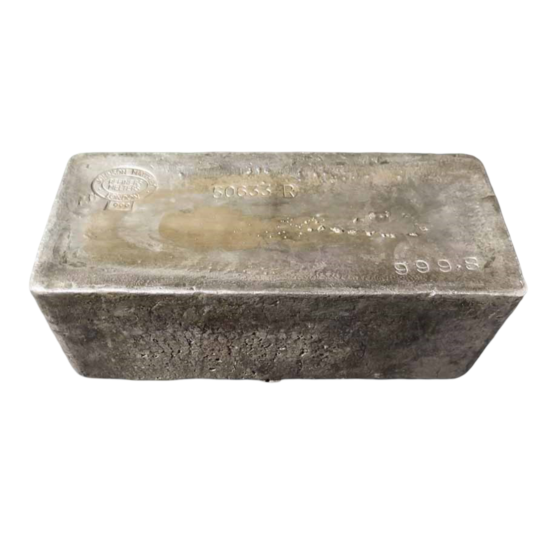 These massive ~1,000 oz Silver Bars are the same industrial-style bullion bars used in large-scale vaulting programs and government-level storage. Each bar contains approximately 930 to 1,050 troy ounces of fine silver and is sourced from a recognized, trusted refinery.