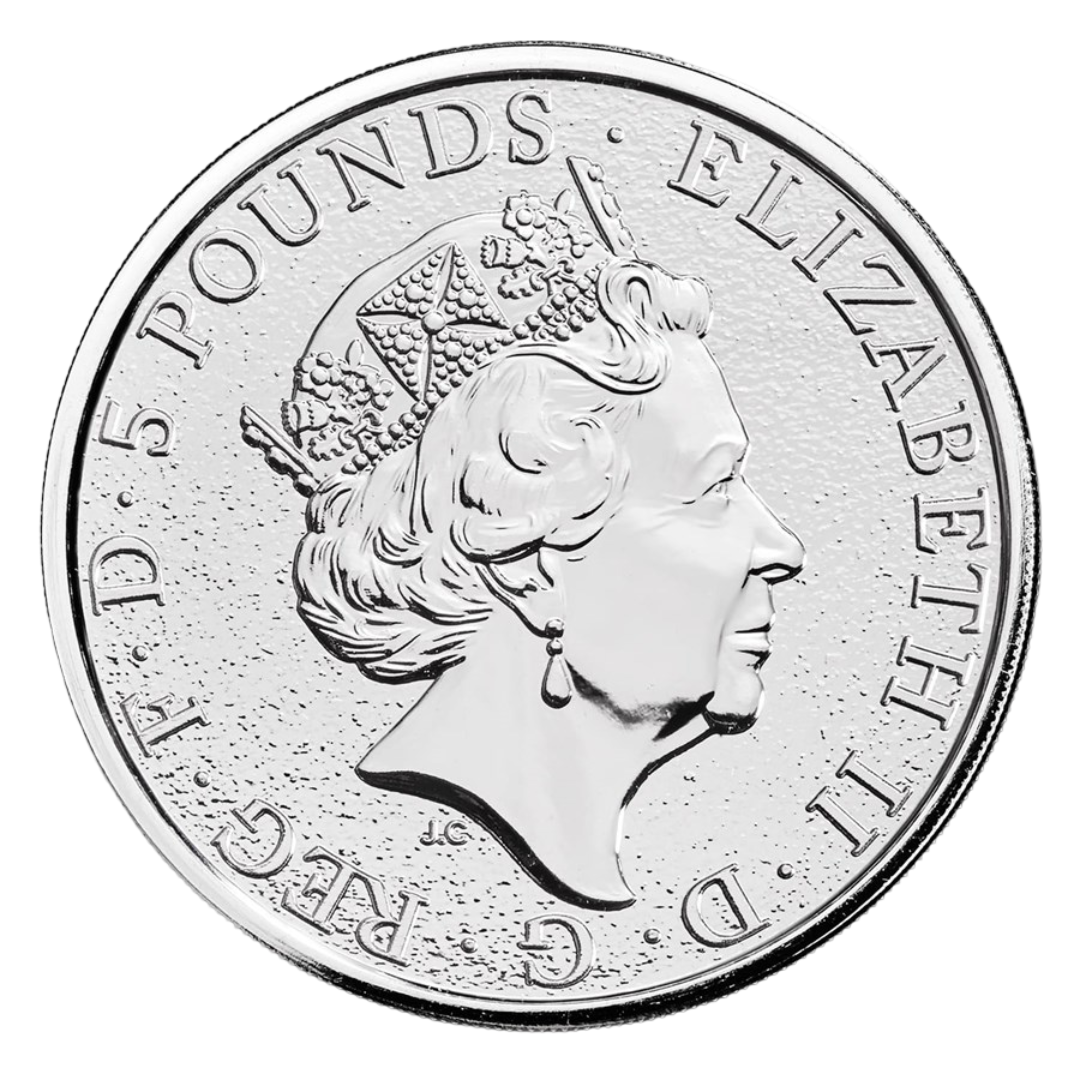 Each 2 oz Silver Queen’s Beasts BU coin is legal tender, struck by The Royal Mint, and guaranteed for weight, purity, and authenticity by the British Government.