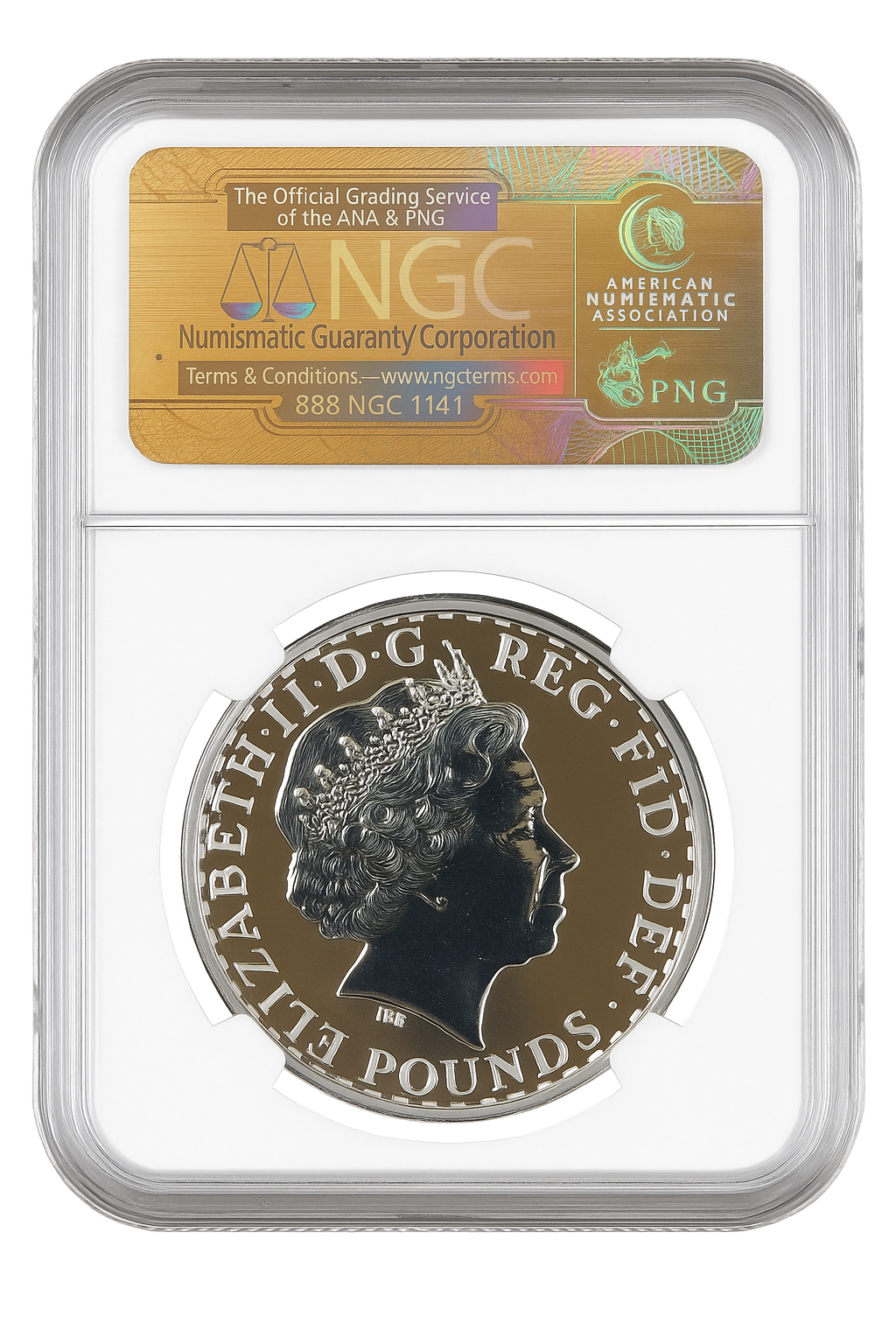 On the obverse, Ian Rank-Broadley’s elegant effigy of Queen Elizabeth II reflects Britain’s enduring monarchy. Each coin is housed in an NGC protective holder to preserve its near-perfect luster and certified quality. A must-have for Royal Mint enthusiasts and VIP collectors seeking premium, investment-grade silver.